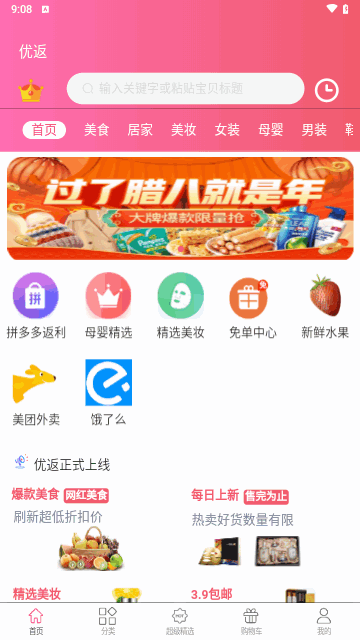 4、精品分类,服装、美食、美妆、母婴等明确分类,购物轻松自如。