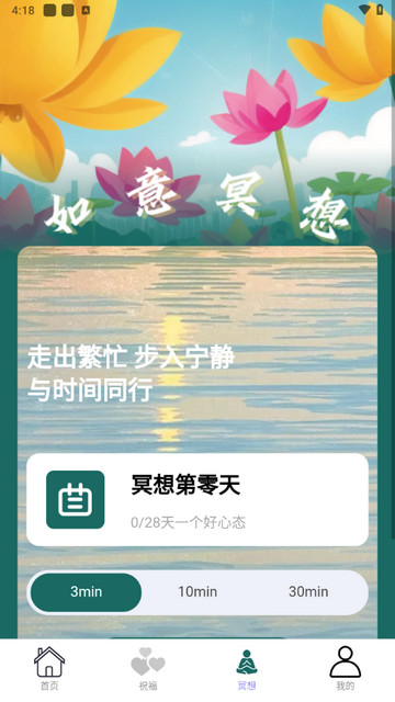 4、冥想放松,可自行选择冥想的时间,让你走出繁忙,享受片刻宁静。