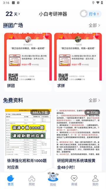 研小白是一款非常好用的考研学习软件,它不仅为用户提供了丰富的考研学习资料,还有着学友圈功能,用户们可以在这里交流考研经验等,还有着学长学姐在线提供考研笔记,帮助用户更加顺利的通过考研测试,成功上岸。感兴趣的小伙伴快来本站下载体验吧。