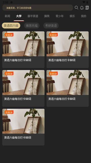 1、在线学习资源是免费的,更多想学习英语的用户可以在线学习。