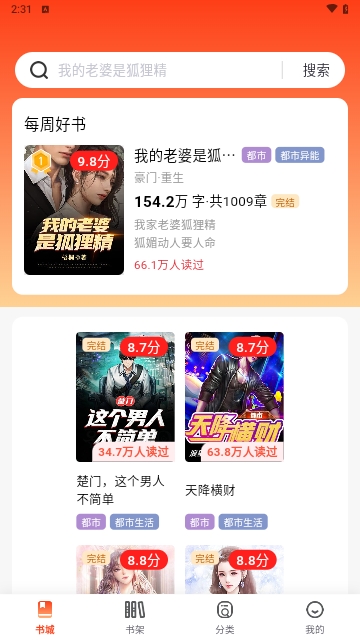 【海量书库】书城图书繁多,种类齐全,包括玄幻、武侠、言情、都市、穿越、宫斗、历史、军事、热门、网络、经典小说