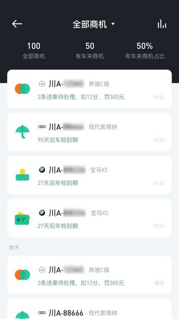 2、清晰明了的商机信息,详细的车辆商机列表,在线了解商机的数量。