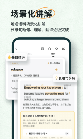 文章的重点单词、各类考试(四六级、考研、托福GRE雅思等)的难点单词,都会由系统高亮展示,帮助你查缺补漏。