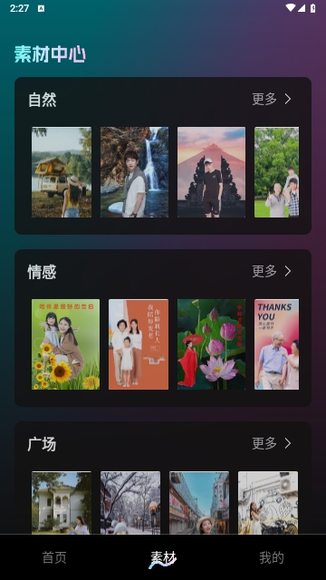 各种风格的背景资源,可轻松选择纯色背景或自然风景等背景使用。