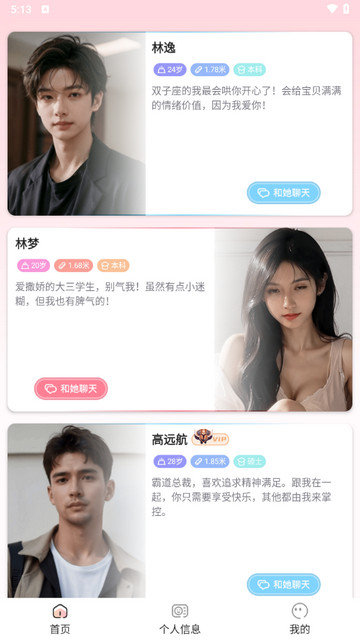 一款安卓手机免费交友软件,软件中有着海量的实用功能等你体验,用户可以在这里选择你的理想角色对象,无论您是寻找一位虚拟女友、探索丰富的角色,还是享受沉浸式的互动恋爱体验,心动伴侣都能满足您的需求,还能24小时陪你聊天,让你不再孤单寂寞。