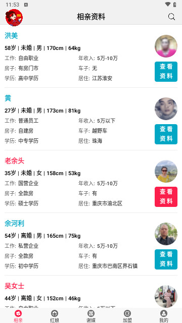 1、也可以对红娘介绍的相亲对象进行查看,在线查看详细资料。