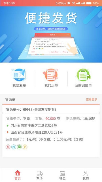 全国城市使用,生活在任意城市的货主都能使用这个应用完成发货。