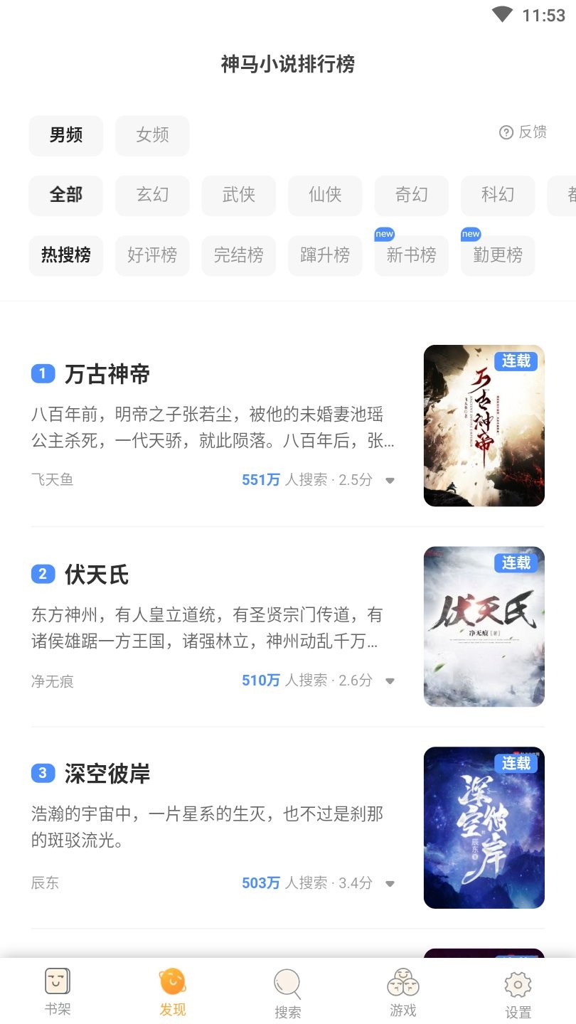 3、该软件为用户提供了许多新的阅读材料。选择适合我的小说,可以读得更快。
