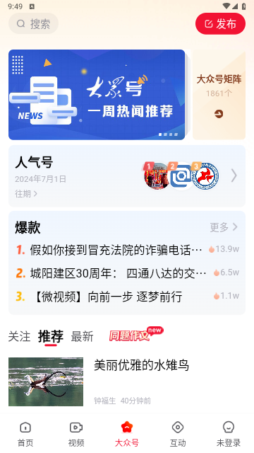 大众新闻坚持以人为本做新闻,强调新闻强报的理念,为用户提供全面、权威的报刊信息。软件还提供互动交流功能,让用户能够参与到新闻报道和讨论中。无论是生活资讯推送还是政经深度分析,都将是用户获取最新资讯的重要工具。快来下载吧。