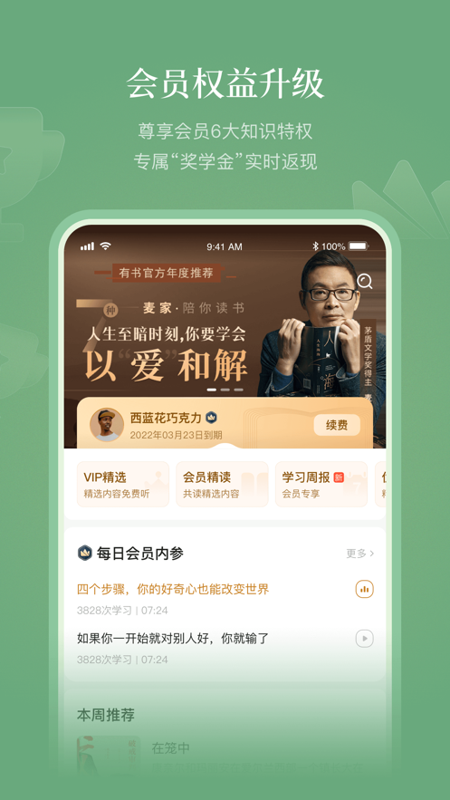 2、在软件中用户可以每周读一本书,以帮助用户决定所选书籍的书谱,阅读更加轻松。