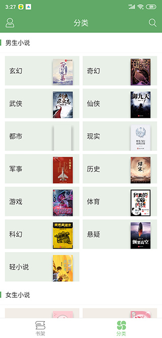 3、页面更加简洁,各种各样书籍分类非常齐全,阅读各种各样精彩小说故事。