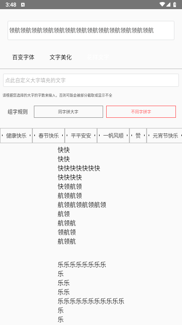 任意输入你想说的话拼成新年快乐、生日快乐等祝福语,也可以将你想表达的文字隐藏于大字之中。