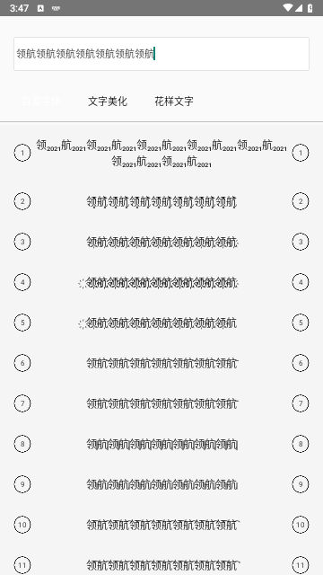4、花样文字,支持多达200多款的花样字体、支持多个花样字体叠加效果,一键分享到各大社交平台,各种字体装饰符号支持自由定制!