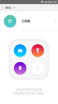 2、可以实现一键拍照、录音、打开手电等实用功能,更能够一键完成组合功能,让曾经繁琐的过程一气呵成,享受更快更有趣的社交生活