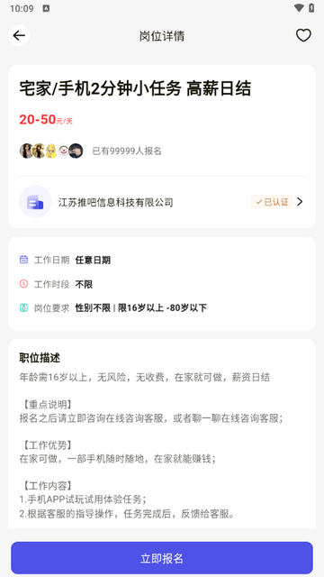 1、对发布岗位的商家进行实名认证,要求上传资质,确保发布的兼职都是真实信息。