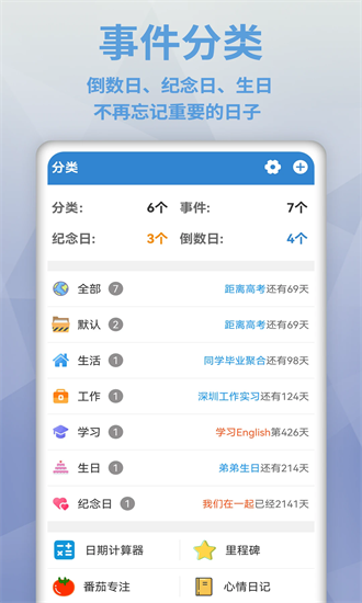 2、多工具集成:日期计算农历转换与番茄时钟结合,功能全面覆盖生活场景,使用便捷一体化解忧。