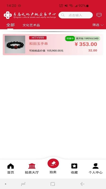 3、在拍卖大厅选择目标拍品,进入拍品详情页。