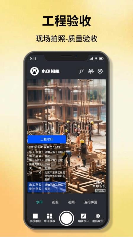 视频播放改时间水印相机是一个水印相机拍照与灵活调整功能的工具,专为满足工作与生活多场景水印需求的用户打造便捷服务。它涵盖全网大量精选热门水印模板与素材,类型丰富适配日常打卡、工程巡查、实地勘探等不同场景,无需自行设计就能轻松添加合适水印;内置实用巡查巡逻水印功能,帮助工程人员高效记录现场情况,提升工作记录的准确性与便捷性;水印模板资源不断更新,确保用户能获取最新样式,同时支持对水印进行灵活调整,包括时间、位置等信息的修改,操作简单无门槛。