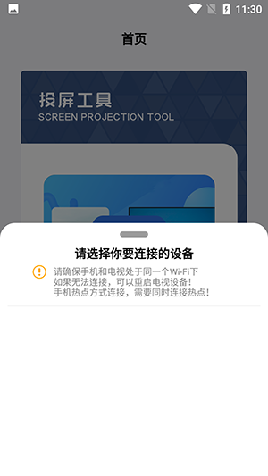 2、进入软件首页后,可看到【投屏工具】等功能,点击底部导航栏中的投屏图标,进入投屏相关页面。