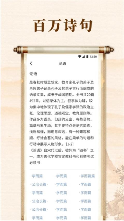 精读是一款专注于古诗词学习与鉴赏的教育平台,汇集了从先秦到近代跨越两千多年的经典诗词作品。提供详细的诗词解析、注释翻译和作者介绍等内容,帮助用户深入理解每首诗词的创作背景与文学价值。内置智能分类系统,按朝代、题材、作者等多种维度组织诗词资源,支持离线学习与个人收藏功能。同时融合诗词填空、飞花令、限时答题等互动学习模式,通过趣味化方式提升学习效果,满足不同层次诗词爱好者的学习需求。