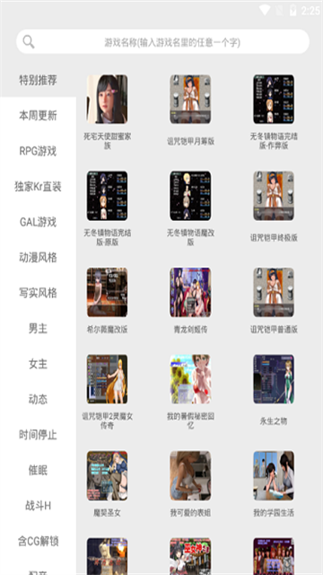 一款很好玩的日系游戏盒子app,为玩家推荐了很多种热门的破解游戏资源,可以直接在线体验,软件内有超多的热门游戏,还有完整的冷狐白狐汉化组的各种游戏,用户可以随时在线进行游戏,非常的方便,小伙伴可以根据自己的喜好来选择想玩的游戏,而且下载都是免费,随时都可以在线玩耍。