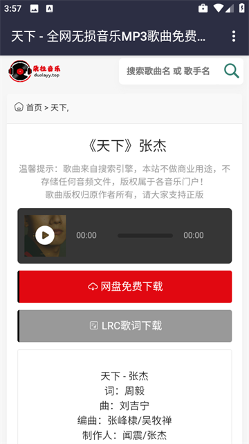 3、任意输入歌曲名,这里小编以“天下”为例。