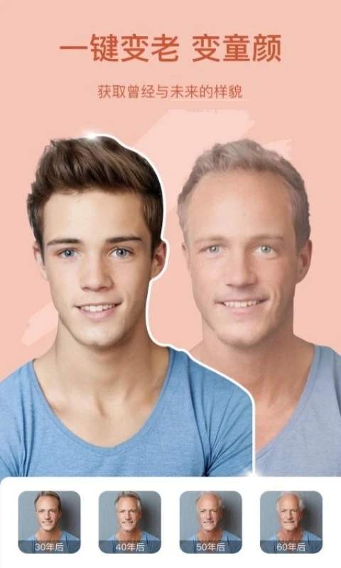 3、支持变老预测功能通过AI技术展示用户未来老年形象,基于当前面部特征智能添加皱纹与白发等年龄痕迹,提供直观的生命阶段视觉体验。