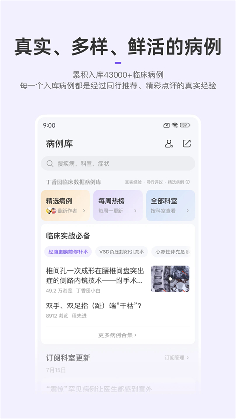 2、病例库融合最新临床案例与十年经典病例,通过结构化展示与专业解读提升病例研讨价值。