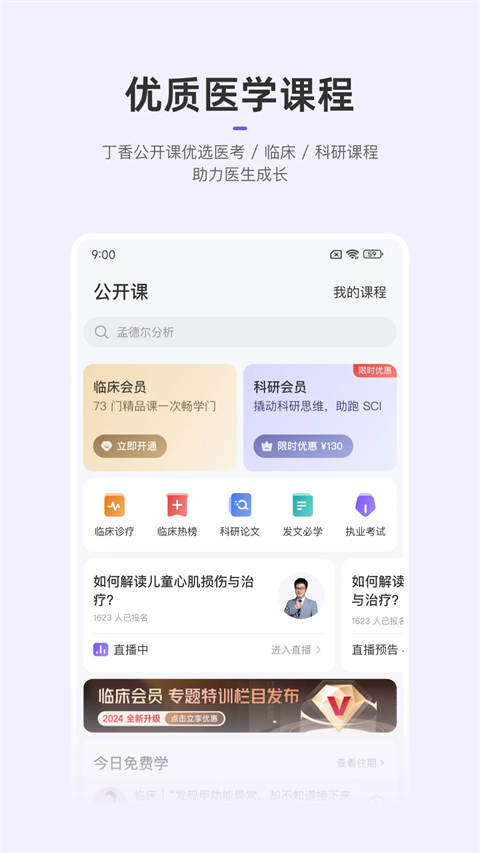 3、整合医考晋升精华内容与专业课程资源,涵盖考试重点、临床技能及科研方法论等多元化学习需求。