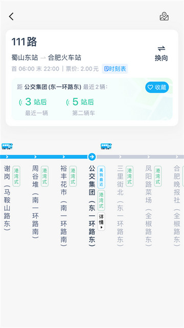 生活服务合肥公交是一款针对合肥地区打造的公交查询软件,该软件为用户提供了详细的公交信息,各路公交站点和路线信息都能在线查询,还为用户提供了实时公交信息,用户可以随时在软件上查看公交具体位置,再也不用盲目等待了,让用户的出行更加方便。
