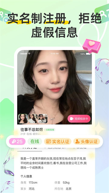 【真实社交】真人实名认证,杜绝推销、骗子等不良虚假用户,遇见真实的Ta,为你的交友保驾护航