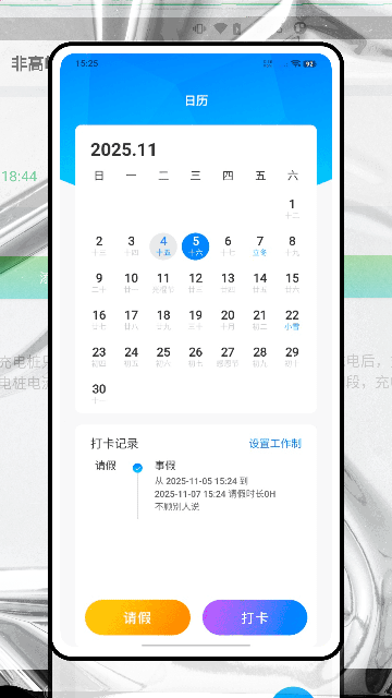 5.考勤周期自定义:可设定工作日与加班周期,满足不同企业需求。