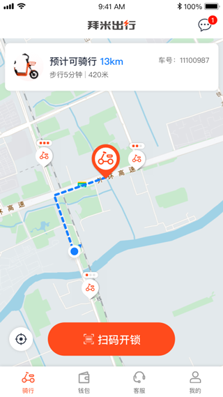 4、依托北斗+GPS双模定位技术,实时显示周边可用车辆位置及剩余电量,支持提前预约,让用户快速找到合适车辆无需盲目寻找。