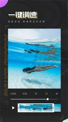 1、快慢回放:缩放视频变速,从1/4慢速到4倍速,轻松改变视频节奏效果很多。