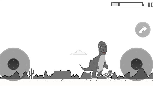 游戏处于黑白的画风中,挑战的难度可谓是很高的,要想完美的过关并不简单,需要完美的操作恐龙飞奔哦。