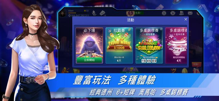休闲益智竞技联盟德州扑扑克这是一款以经典热门扑克牌玩法为主的休闲娱乐游戏。游戏内提供不同的扑克牌玩法,让玩家们可以自由的进行体验。同时,也能在该游戏内参与很多趣味的尝试等。游戏内有着城市主题赛的举办,让玩家们参与赛事赢取更多的精彩,获取更多的刺激。还能在该游戏内参与很多趣味的挑战等。不妨下载试试吧。