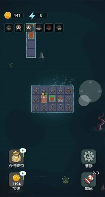3、在这里我们需要去合理移动我们的木筏,不断在这个海域上漂流。