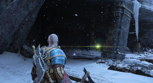 首先到达图示位置,这里有个冰凌,击破之后即可找到古物。