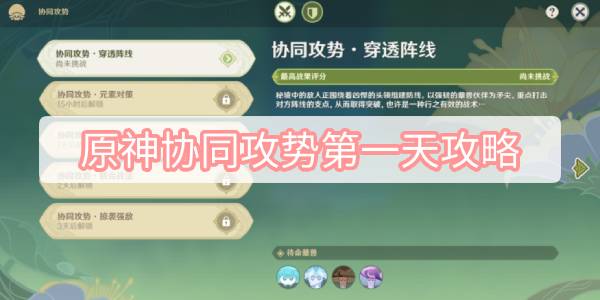 以上就是这篇文章有关原神协同攻势第一天攻略的所有内容了,这样就能够顺利完成潜能激发了。更多游戏相关资讯内容,敬请关注大三软件站。