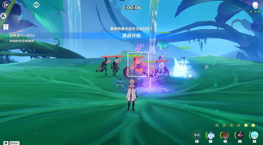 3、使用[重点进攻],瞄准集火带盾的丘丘人。