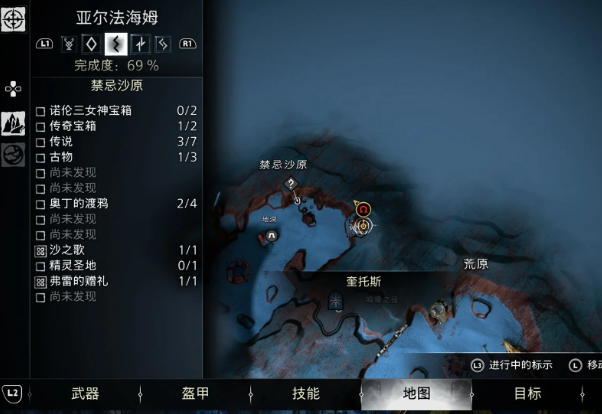 还是在亚尔法海姆-禁忌沙原,如图所示的位置可以找到遗忘之塔的宝藏,并获得护身符附魔-亚尔法海姆美德。