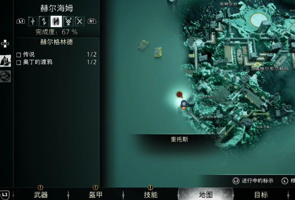 1、在赫尔海姆-赫尔格林德,击败加姆后,如图所示可以找到传说标示 - 赫拉斯瓦尔格。