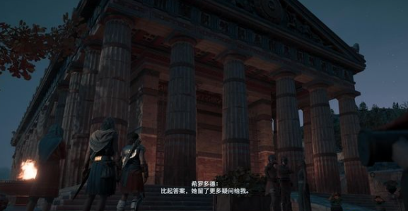 1、进入蛇之谷途中遇到伙伴希罗多德,到达神殿后,与门卫交谈后即可进入。