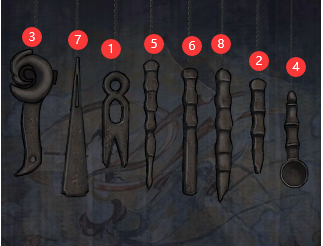 10、得到玉佩后看其图案得到移动方法,按下图所示摆放,即可获得神仙索。