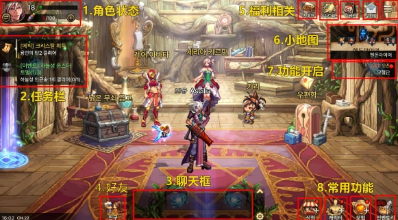 动作格斗进入游戏后,迎面而来的是看不懂的韩文,由于是韩服,所以有些界面大家都看不懂什么意思,也没法深度游玩,体验感直线下降,下面由小编为大家带来其中主页面的详细功能介绍,帮助大家快速入坑。