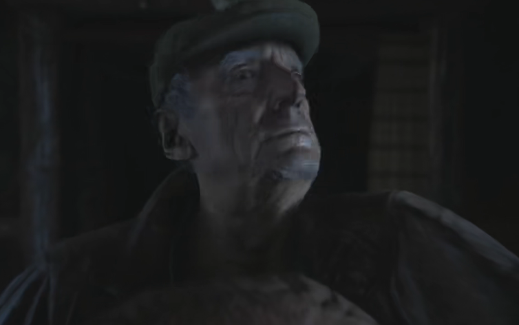 2、打开门帘后,一个老头拿枪出现,对话结束后给伊森一把枪后就死了。