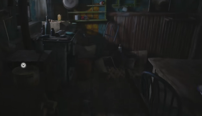 1、进入村庄后发现四周一片狼藉,走到道路尽头的小屋中,调查门帘时触发剧情。