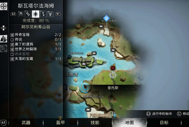 藏宝图位于斯瓦塔尔法海姆 - 阿尔贝利希山谷,下图所示的位置我们可以拿到藏宝图-勤奋果实。