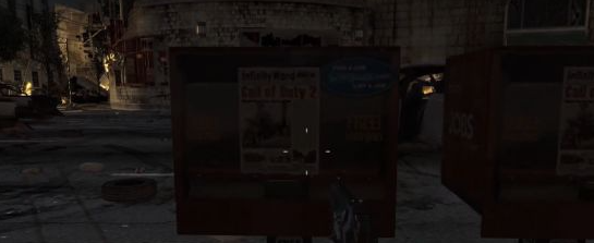 此关卡中,核爆让华盛顿夷为平地,而路边的邮箱却完好无损,打爆邮箱后会有邮件飞出,上面的内容写着游戏制作组的官网和招聘信息