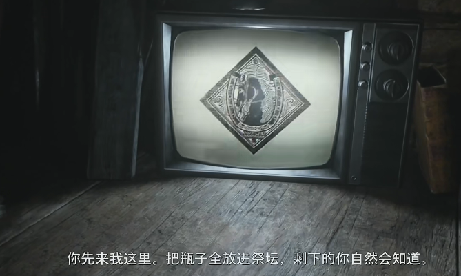 9、乘坐电梯离开,回到村庄根据指示进入大门战斗,之后拿到最后一个瓶子。